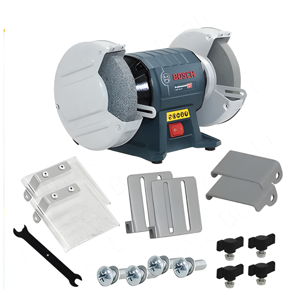 - Includes tool-free, adjustable workpiece supports, steel protective guards, and spark protective covers