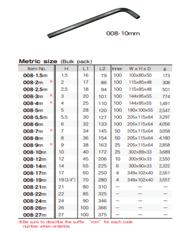 1.5mm, 2mm, 2.5mm, 3mm, 4mm, 5mm, 6mm, 8mm, 10mm, 11mm, 12mm, 14mm, 17mm, 19mm, 21mm, 24mm, 26mm, 27mm