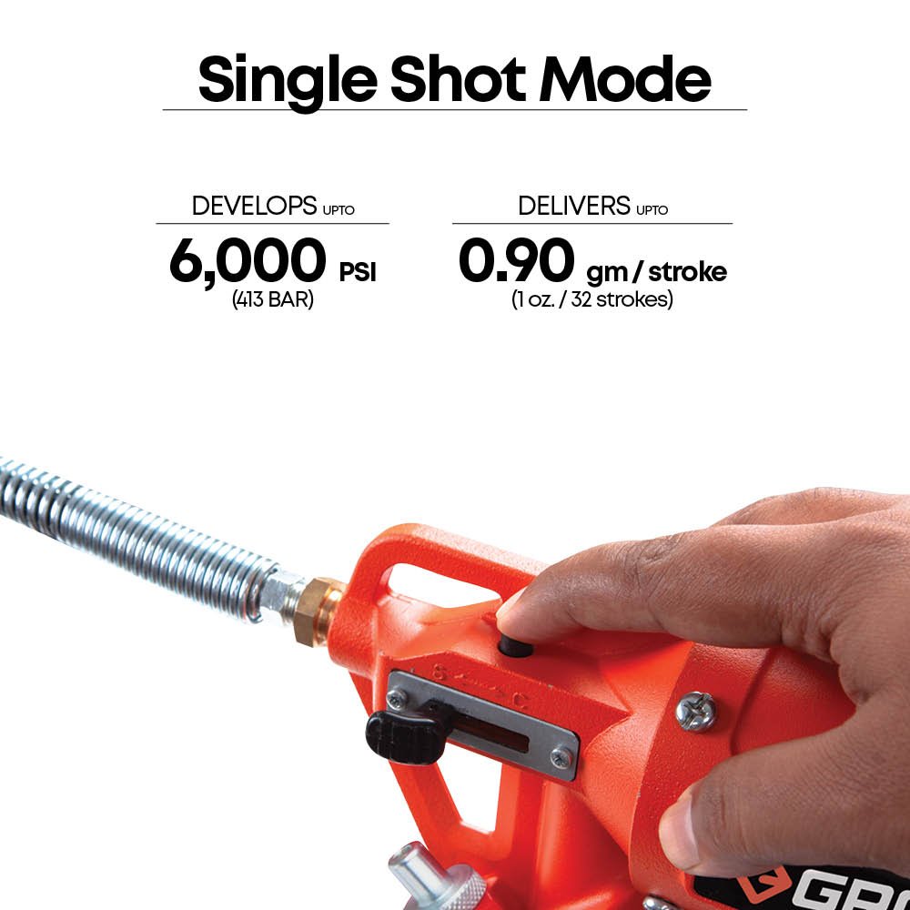 Its dual-mode feature enables you to easily switch between continuous grease flow and single-shot mode with just the slide of a button. The continuous mode is perfect for large-scale applications, while the single-shot mode is ideal for precision lubrication in hard-to-reach areas.