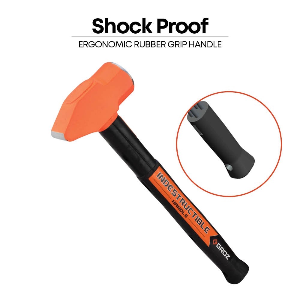 Indestructible 16 long handle is made with spring steel bars that run all the way through the handle. Bars are locked with the Hammer head using Steel locking plates ensuring that the head never gets dislodged
