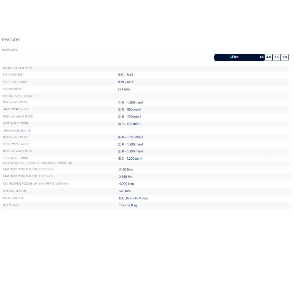• Impact Wrench, Forward/Reverse Rotation Auto Stop Mode