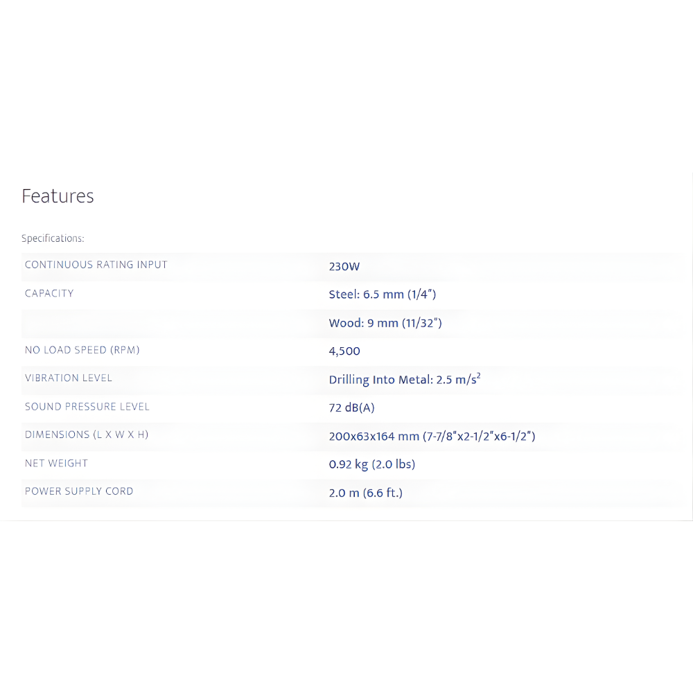 • Lightweight (1.8 kg) with large drilling capacity up to 13 mm in concrete