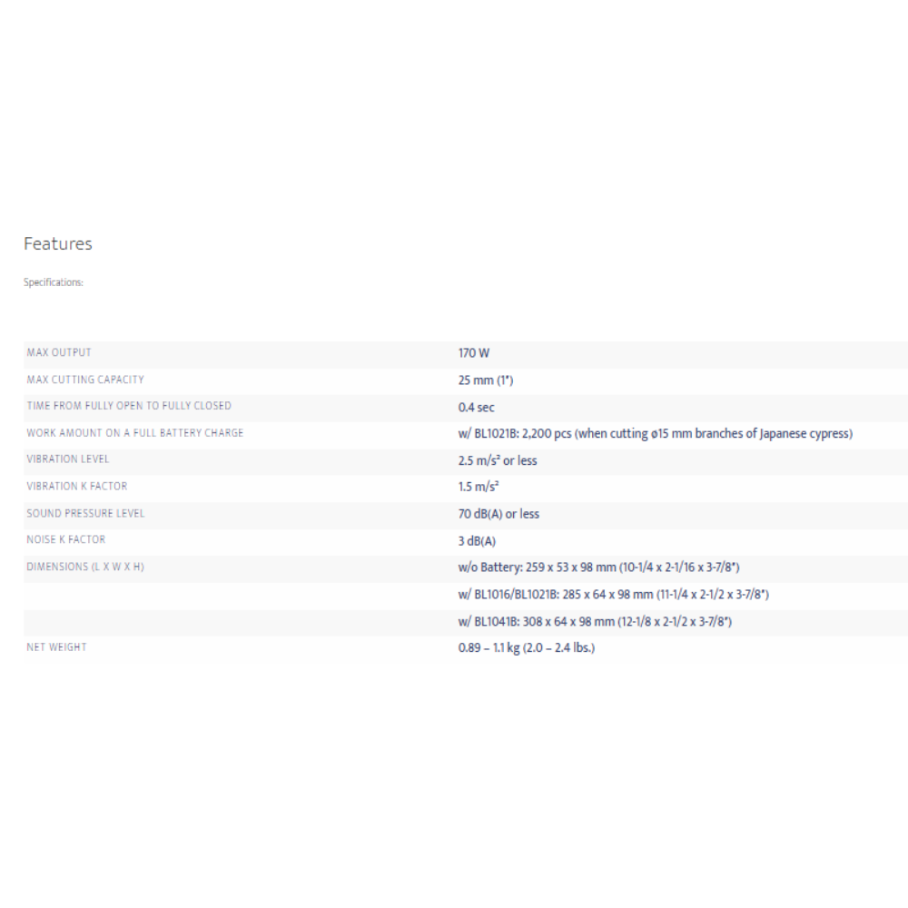 • Makita Brand Cordless Pruning Shear