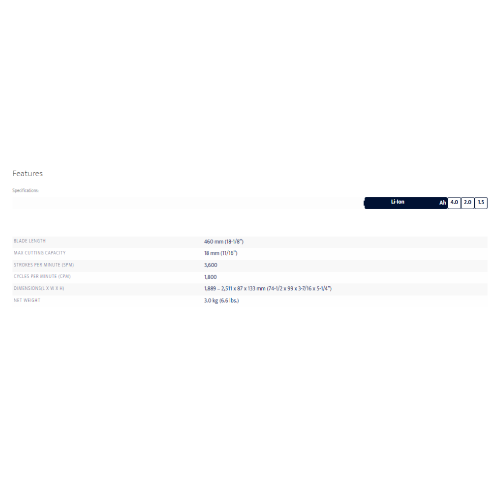 • Reverse rotation system frees the blade when it is jammed by thick branches