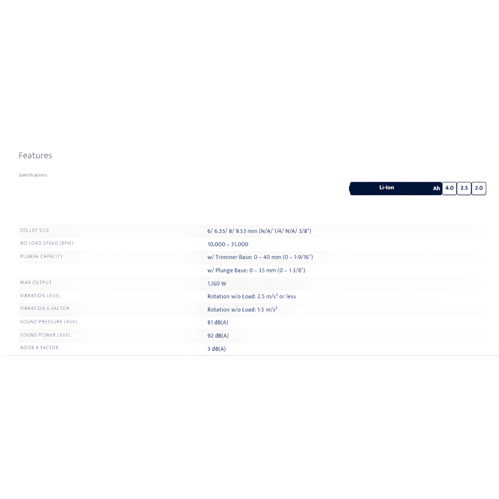 • 40Vmax XGT Li-Ion battery and re-designed BL motor deliver the same or higher power than that of 1,000W class AC models