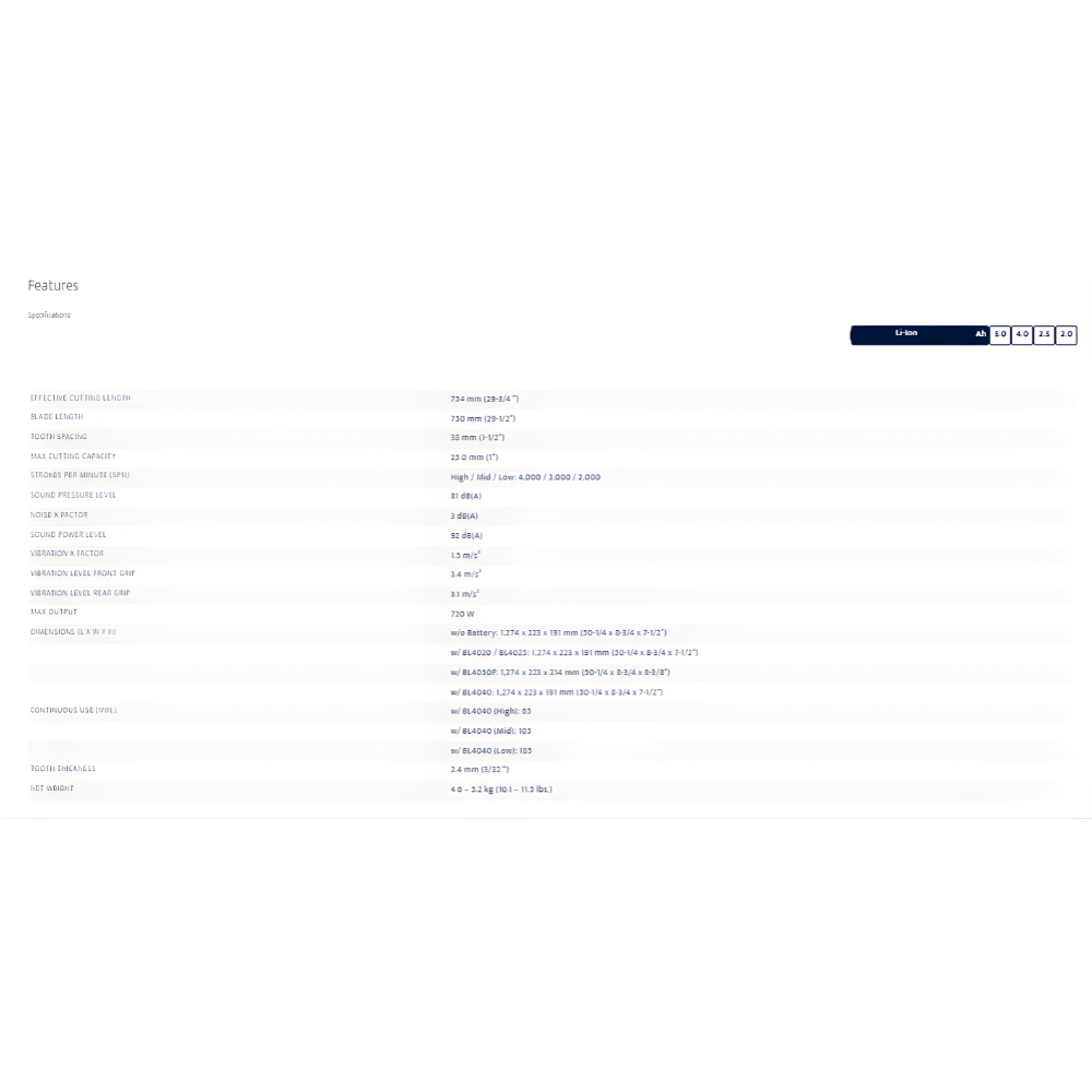 • 40Vmax XGT Li-Ion battery and BL motor provide high power and excellent cutting performance