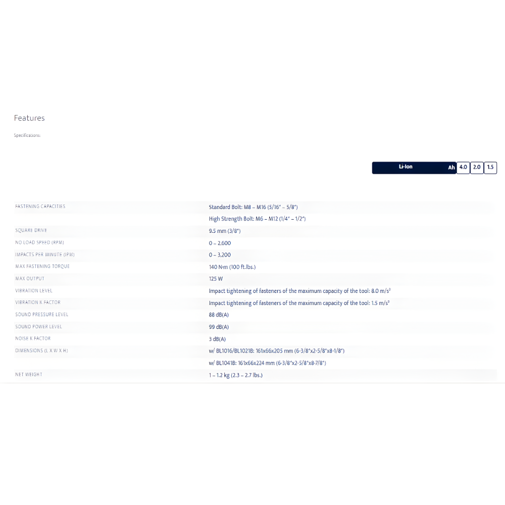 • Ultra compact design at only 161 mm (6-3/8″) long and lightweight for reduced operator fatigue