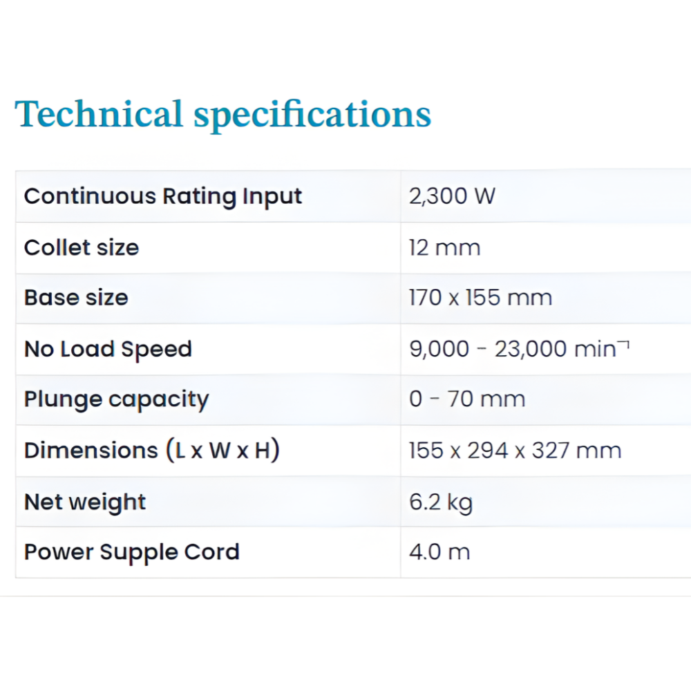 • Powerful 2,300 W motor delivers 9,000-23,000 RPM