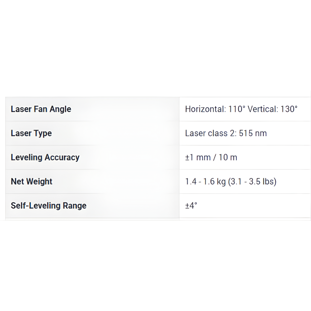 • Spot laser for lower plumb point: Red diode laser [650nm]