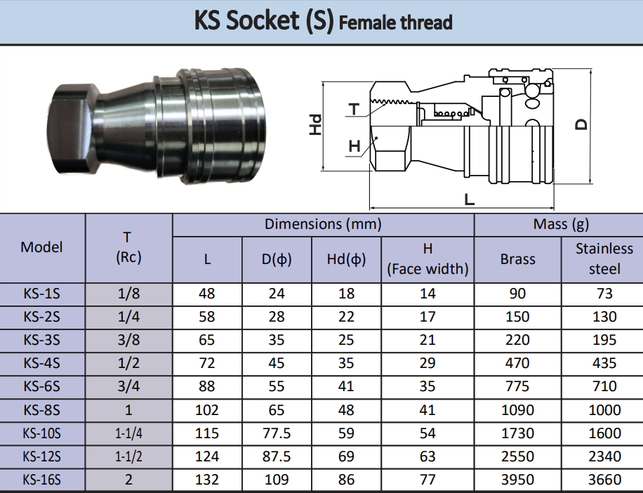 KS-2S-B (1/4"), KS-3S-B (3/8"), KS-4S-B (1/2"), KS-6S-B (3/4")