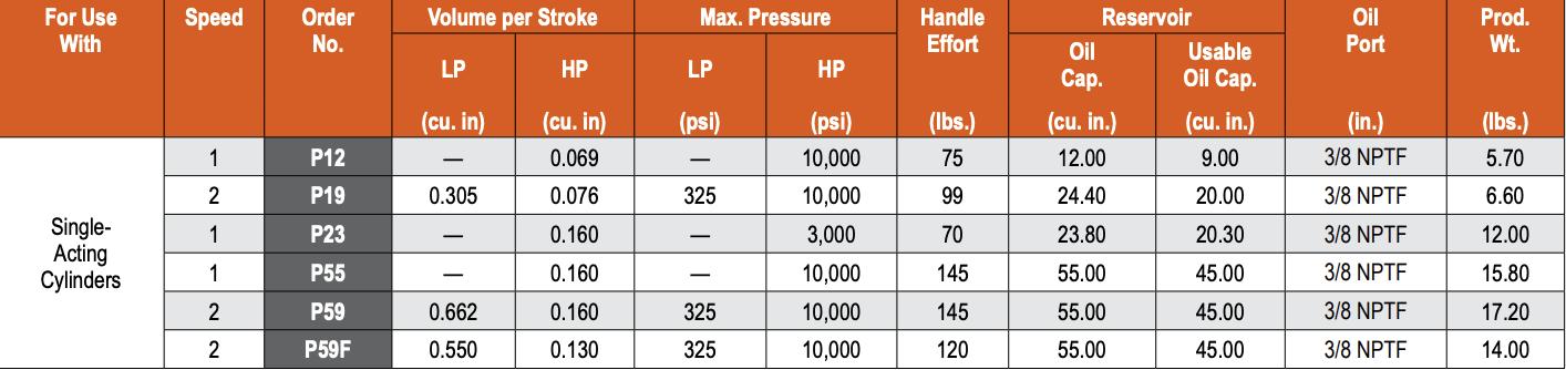 Power Team P Series Single and Two-Speed, Single-Acting Hydraulic Hand Pump Made in U.S.A.