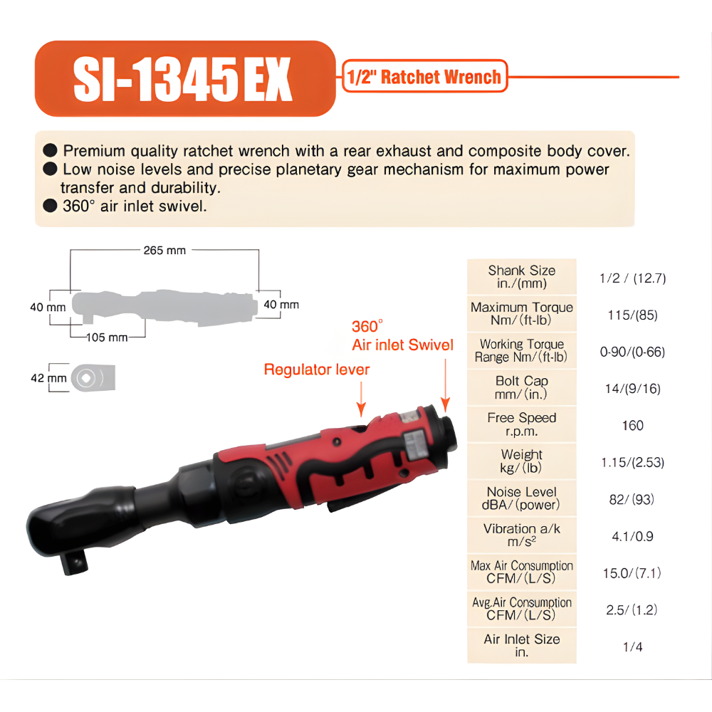 Shinano Pneumatic Ratchet Wrench 1/2" Model: SI-1345 EX