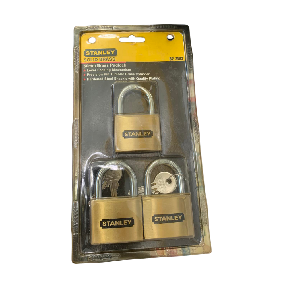 Stanley 3 pcs. Keyed-Alike Solid Brass Padlock 50mm 82-7493