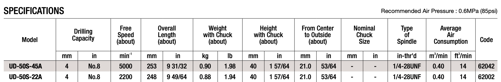 Be the first to review “Uryu UD-50S-22A Angle Type Pneumatic Drill Made in Japan”