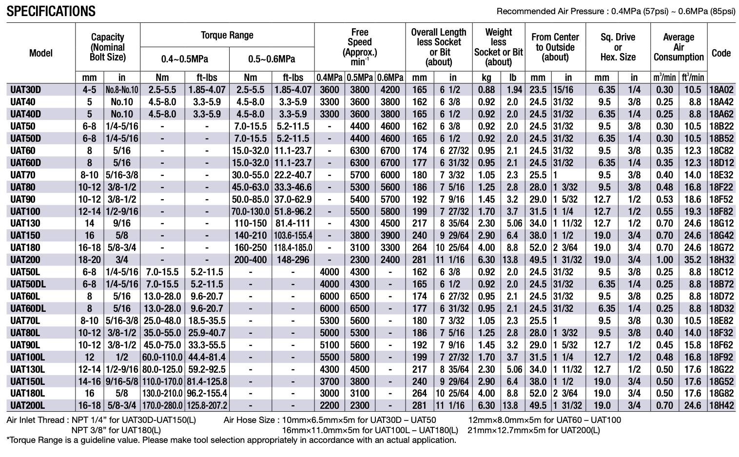 Models Available: UAT50SD, UAT60D, UAT60S, UAT60SD, UAT70, and UAT80L