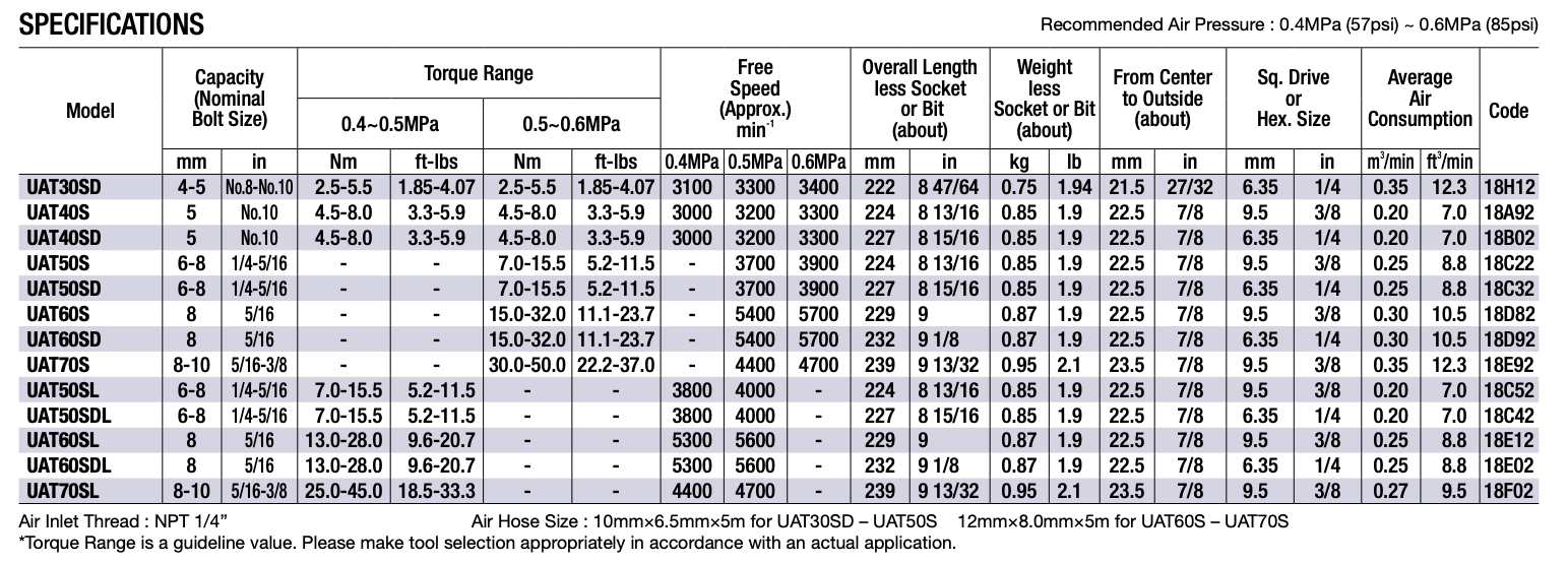 Uryu UAT Series Shut Off Pneumatic Oil Pulse Tool Made in Japan